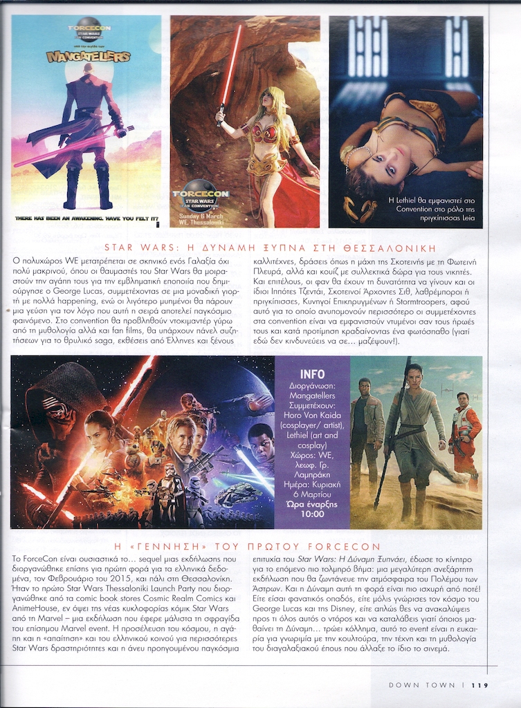 A photo of mine with Lethiel's Art & Cosplay as Slave Leia was printed in the Greek magazine "DownTown" ( page here). I would like to stress out that they cut off my logo, contrary to my licensing instructions, which I consider very unprofessional. [in print].