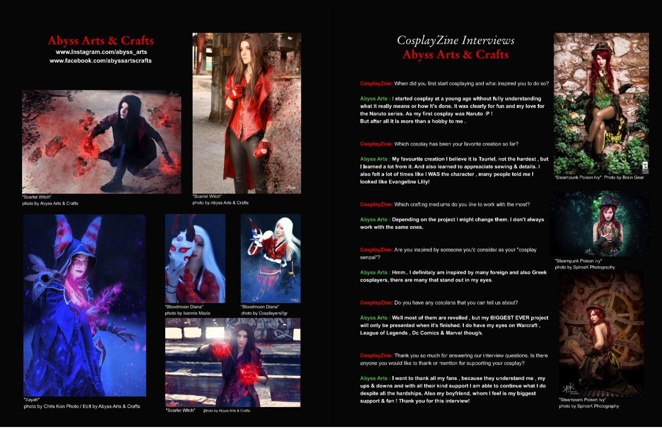 Photos of Abyss Arts and Crafts in CosplayZine Magazine taken by me were published alongside